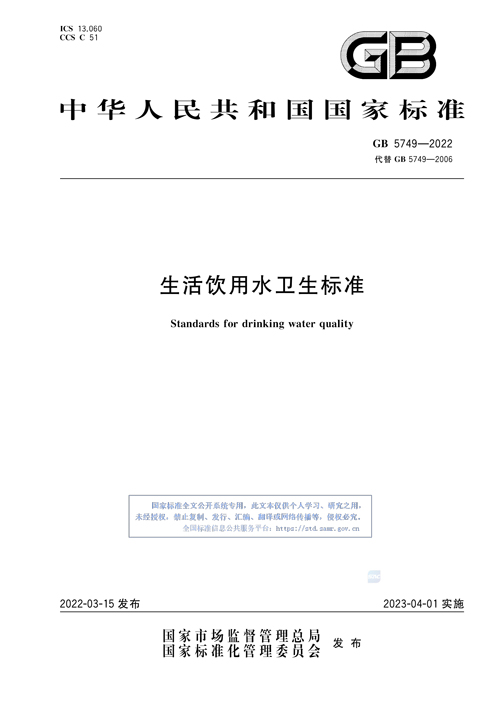 本文件规定了生活饮用水水质要求、生活饮用水水源水质要求、集中式供水单位卫生要求、二次供水卫生要求、涉及饮用水卫生安全的产品卫生要求、水质检验方法。本文件适用于各类生活饮用水。下列文件中的内容通过文中的规范性引用而构成本文件必不可少的条款。其中,注日期的引用文件,仅该日期对应的版本适···